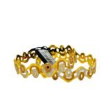Elevate your style with our Designer Multi-Tone Geometric Pattern Bracelet, a perfect blend of elegance and artistry. This exquisite bracelet features a unique wavy design adorned with intricate circular motifs in gold, silver, and copper tones, offering a vibrant yet sophisticated look. Crafted with precision, the lightweight and comfortable open-cuff style ensures a secure fit for everyday wear or special occasions. Whether paired with ethnic attire or modern outfits, this bracelet adds a statement charm to your ensemble. A must-have addition to your jewelry collection!
