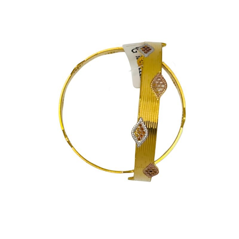 Enhance your traditional charm with these Elegant Gold Finish Designer Bangles. Crafted with a radiant golden polish, these bangles feature intricate diamond-shaped motifs in a dual-tone finish, adding a touch of sophistication and sparkle. Perfect for weddings, festivals, and special occasions, these lightweight bangles blend timeless tradition with modern elegance. Pair them with your favorite ethnic outfits and make a lasting impression!