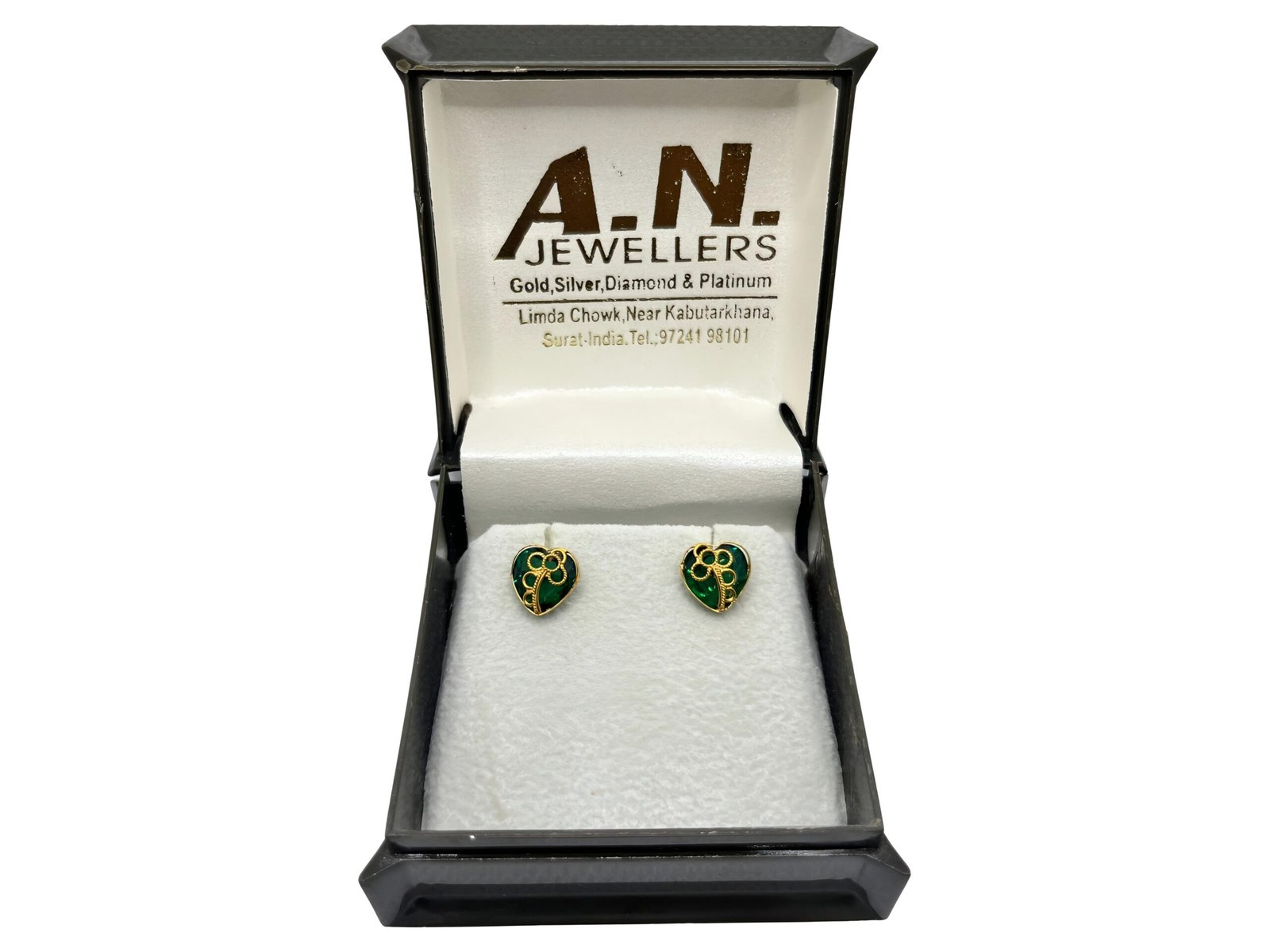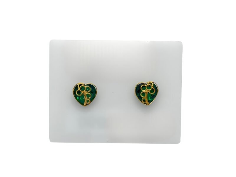 Delicate and charming, the Emerald Heart Stud Earrings feature a rich green enamel heart adorned with intricate golden detailing. Their petite size makes them perfect for everyday wear, while the elegant design adds a touch of sophistication to any outfit. Ideal for both casual and special occasions.